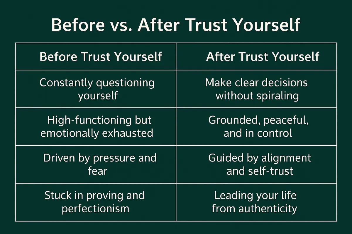 A 10-week coaching experience to help high achievers stop proving, performing, and pleasing, and start leading their lives with grounded self-trust.